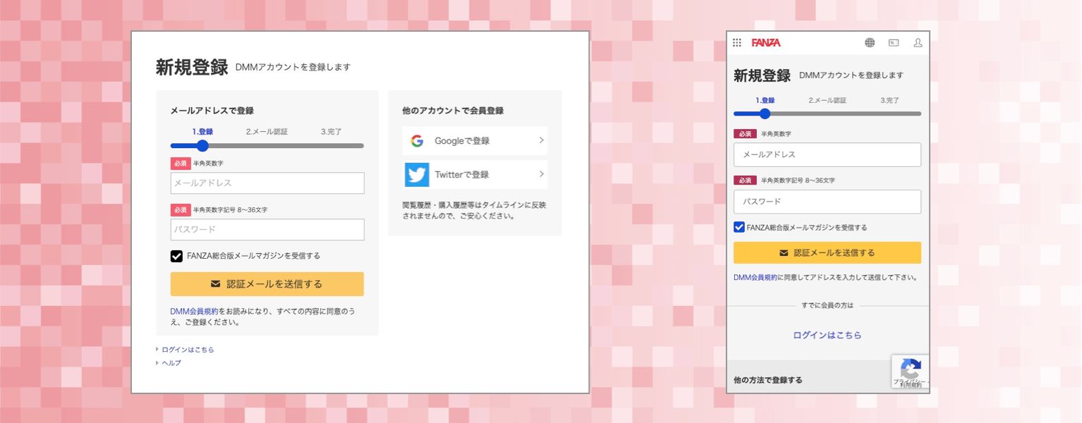 FANZAの会員登録の流れは以下の通りです。